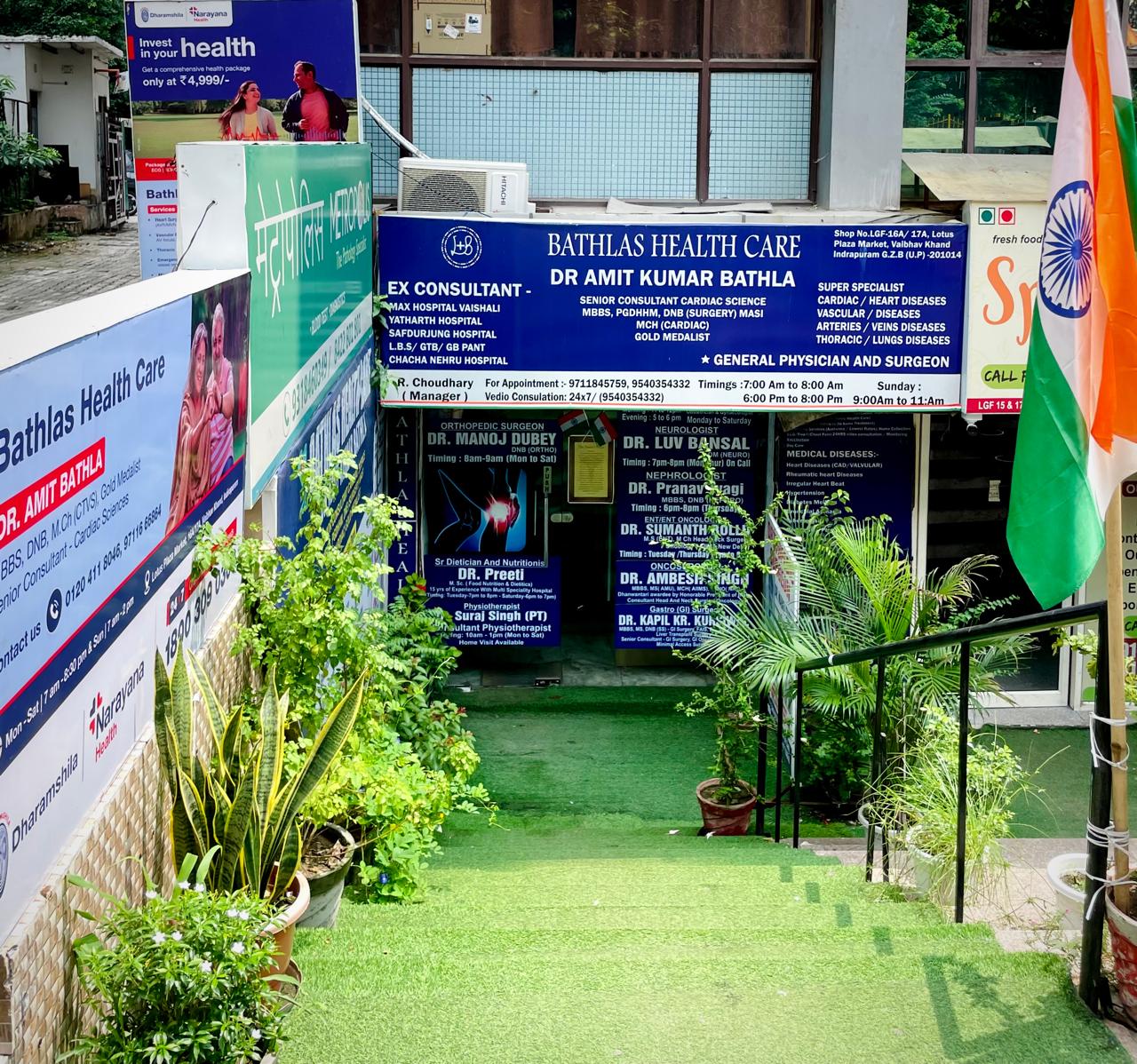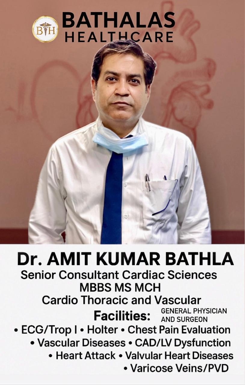 At Bathlas Health Care, led by Dr. Amit Kumar Bathla, we provide specialized and compassionate care for all your health needs in Indirapuram. Dr. Bathla is a renowned cardio, thoracic & vascular surgeon and general physician, recognized as one of the best heart specialists in the area. Our services include comprehensive care for cardiac, vascular, thoracic neurology, ortho, nephrology, pulmonary conditions, & ENT/ENT Onco Diseases.